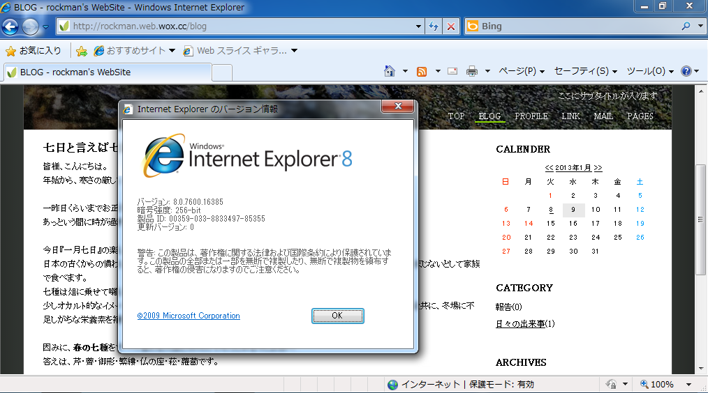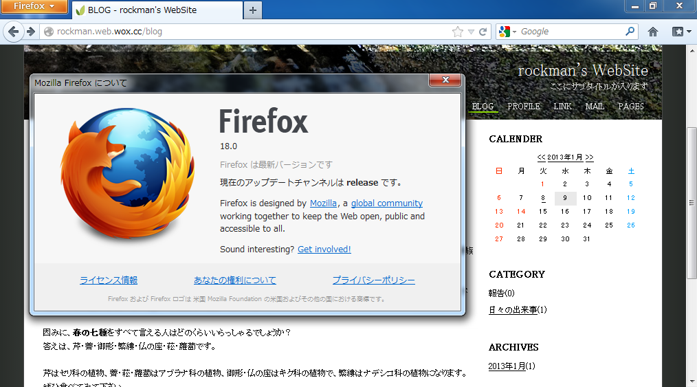 ブラウザ:Internet Explorer 8.0.7600.16385 および Firefox 18.0